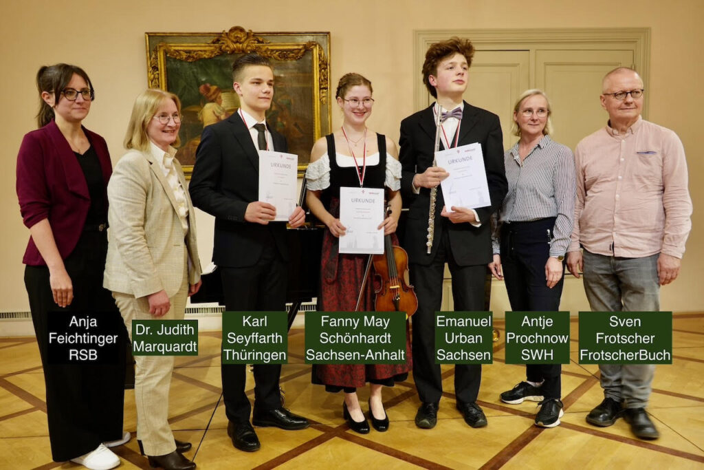 Natürlich war auch die RSB Roland Schimek Beteiligungsgesellschaft mbH wieder als Mäzen dabei. Über das diesjährige Stipendium durften sich Fanny May Schönhardt aus Halle, Emanuel Urban aus Leipzig und Karl Seyffarth aus dem thüringischen Windischleuba freuen. Für sie geht es jetzt zu einem Meisterkurs an die Austrian Master Class in Österreich. Die Veranstaltung war damit wieder einmal ein starkes Zeichen, dass die klassische Musik beim Nachwuchs in talentierten Händen liegt.